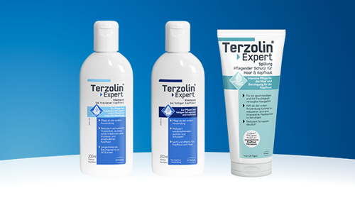 Die Terzolin®-Mittel gegen Schuppen sind in der Apotheke erhältlich. Wenn Sie unter Kopfhautschuppen oder schuppigen Hautentzündungen am Körper leiden, sollten Sie sich vor der Behandlung mit Terzolin® von einem Arzt oder Apotheker beraten lassen. Sie können Ihnen genau sagen, welche Terzolin®-Produkte die richtigen Mittel gegen Kopfhautjucken sowie schuppige, trockene oder fettige Kopfhaut sind.